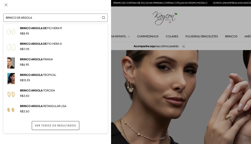 Entre elas estão: brincos de argola, conjunto básicos, peças religiosas, peças com pérola
